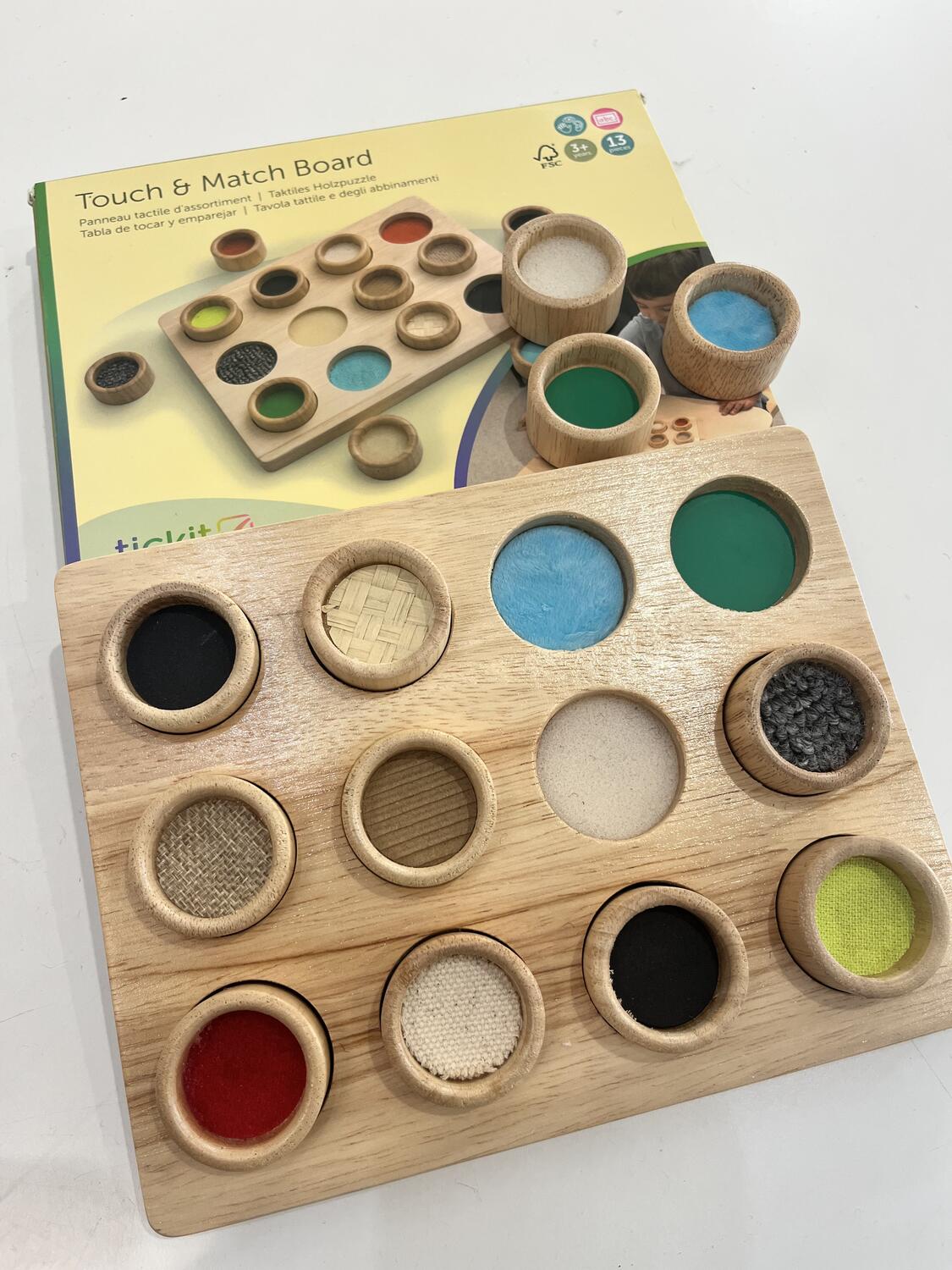 Un bellissimo set di gettoni tattili in legno massello per il gioco sensoriale.